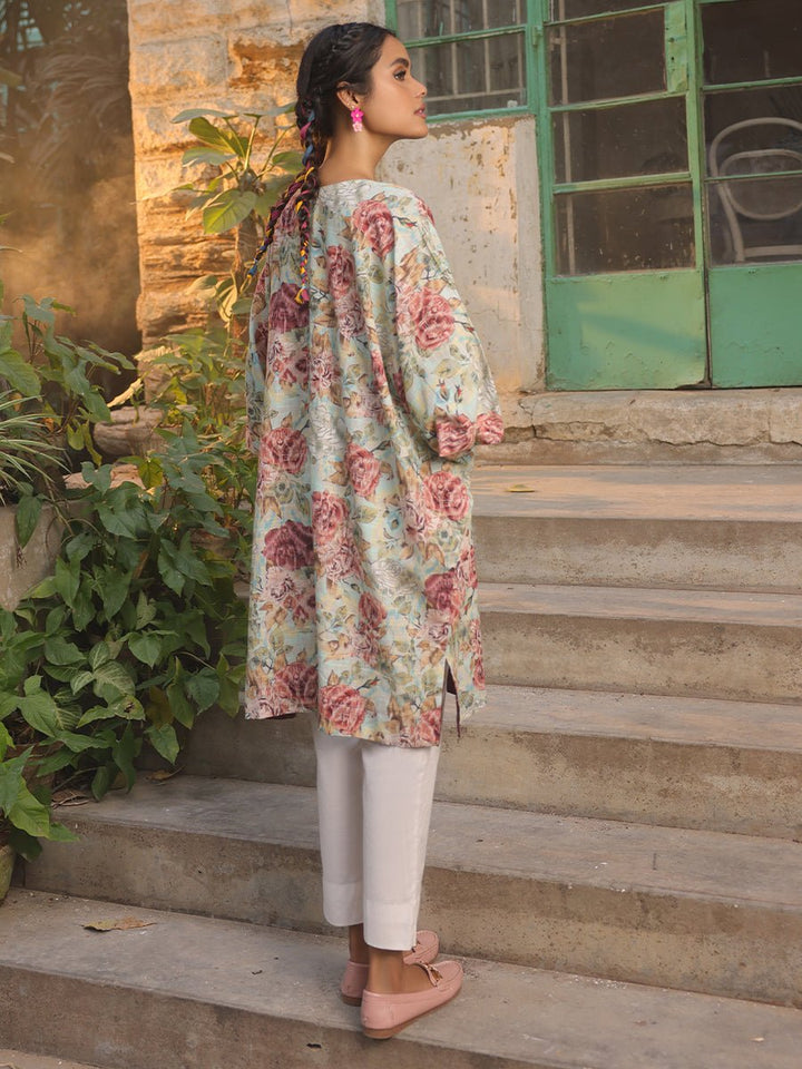 Straight shirt with kimono sleeve and round neck with a v cut.