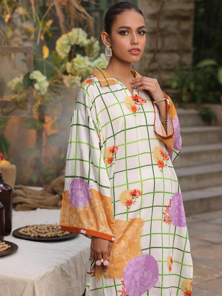 1PC Stitched Basic Printed Cotton Silk Shirt