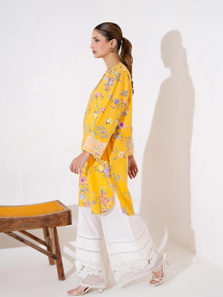 1pc embroidery on sleeves round neckline with y-placket *short length.
