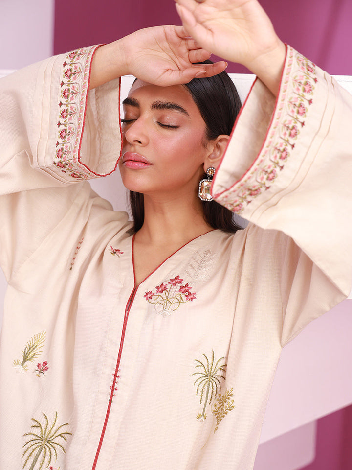 A Drop Shoulder Embroidery Shirt, Tree Pattern And Indian Booti Motifs On Embroidery