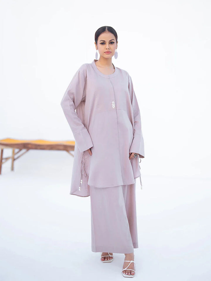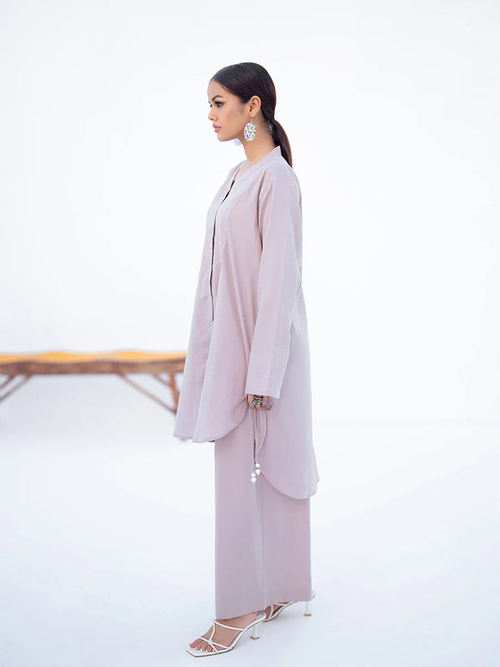 Elevate your everyday style with this sophisticated 2-piece outfit crafted from premium dobby fabric. Featuring a stylish button-down shirt with a classic collar and matching straight pants, this ensemble offers a perfect blend of comfort and elegance. The soft peach hue exudes subtle charm, making it an ideal choice for casual outings or minimalistic office wear.