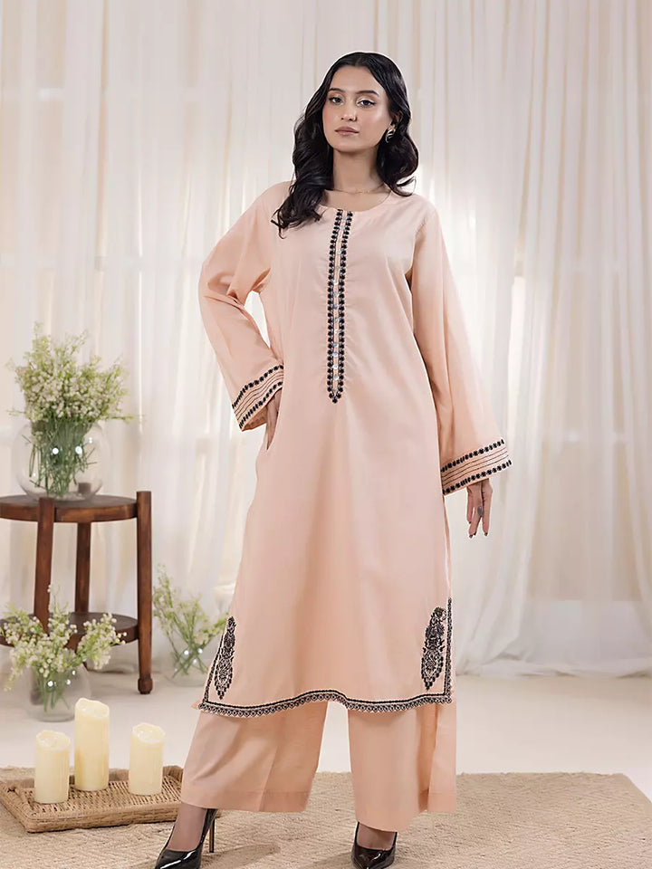 2pc Embroidered Dobby Shirt with Plain Trouser.