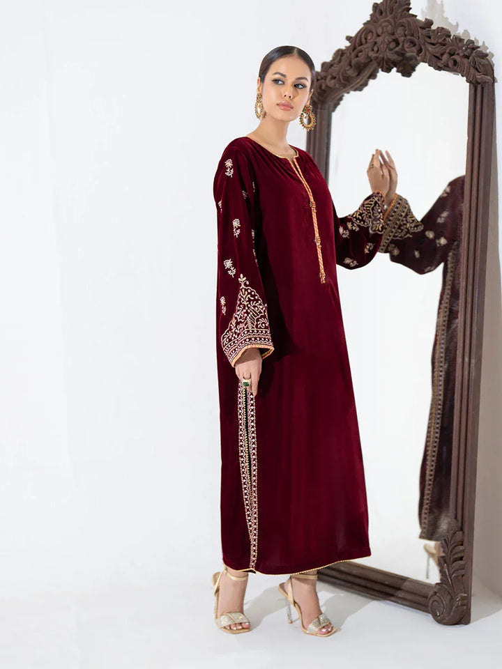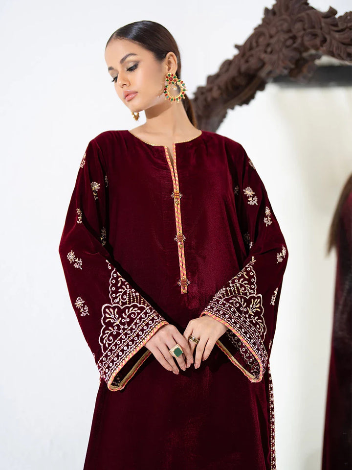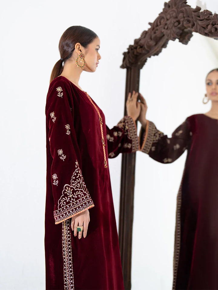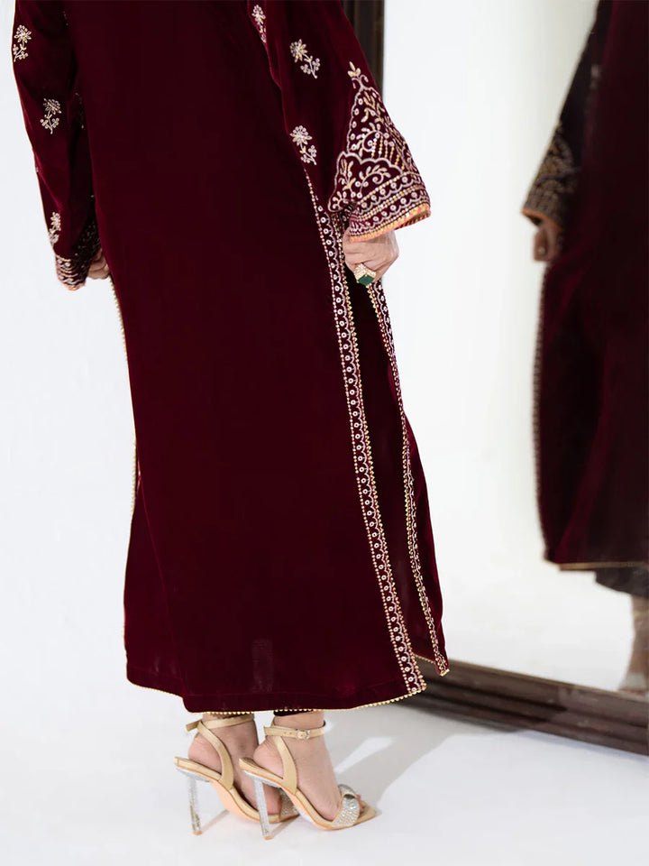2PC Stitched Embroidered Velvet Dress