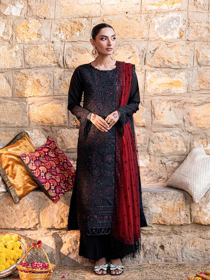 Celebrate tradition with our 3PC Unstitched Festive Embroidered Suit. Designed with meticulous embroidery on premium fabric, this outfit offers versatility and sophistication, making it an ideal choice for any special occasion.