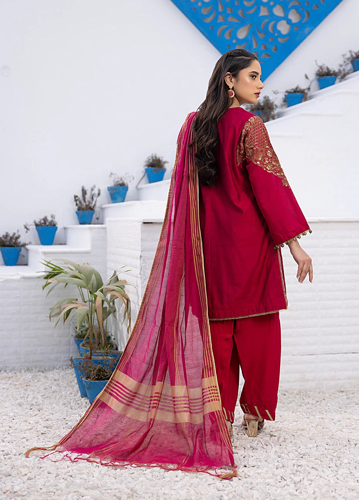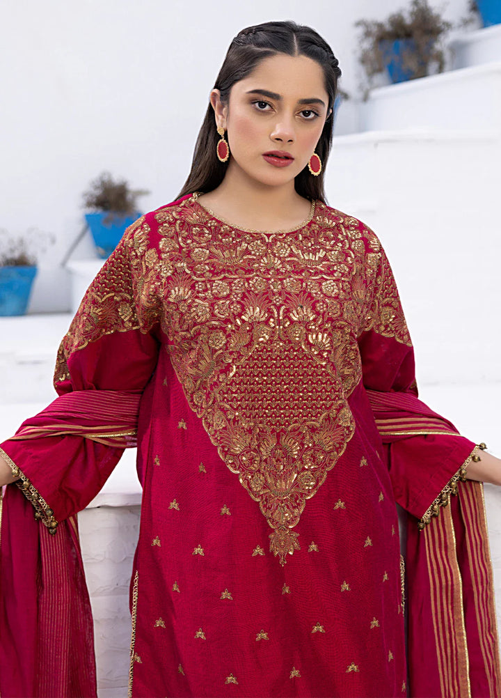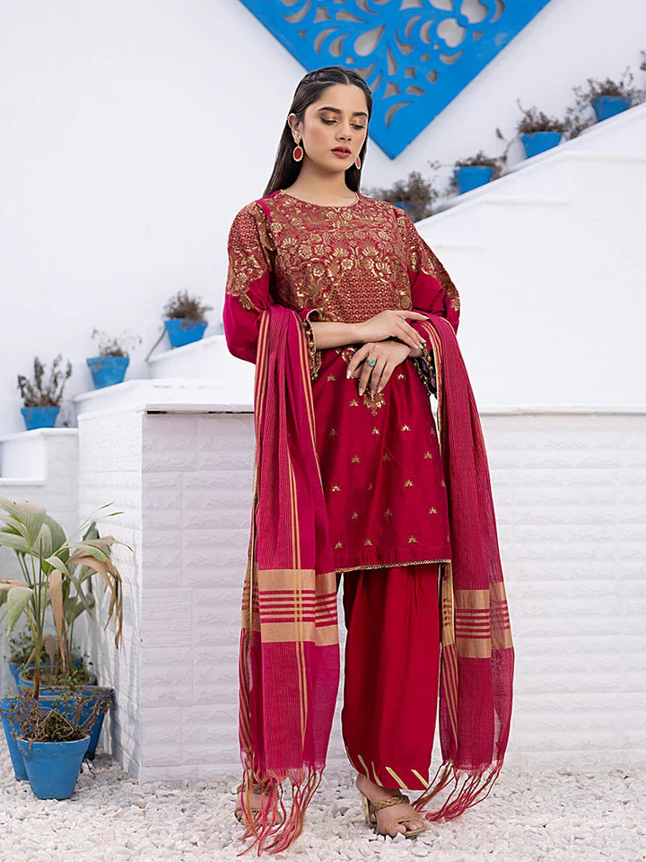 3Pc Stitched Cotton Net Embroidered Suit