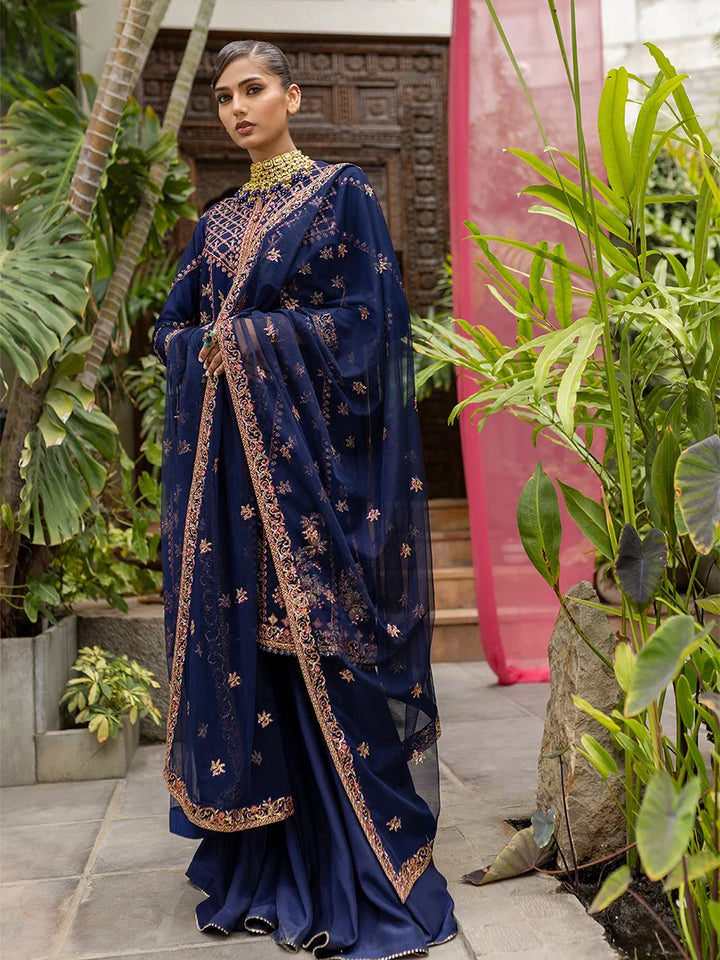 3PC Stitched Poly Net Embroidered Suit (AN35)