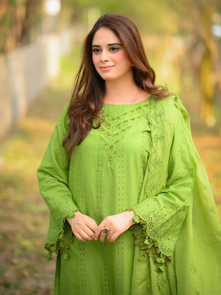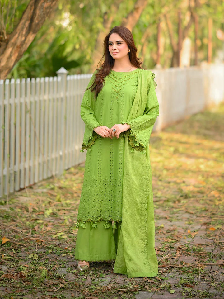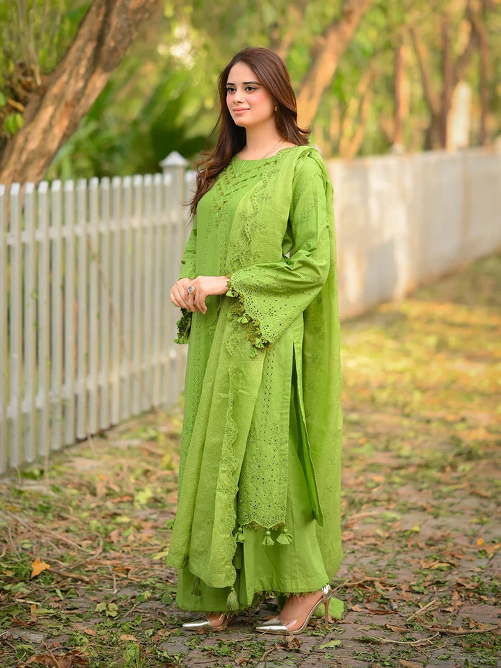 3Pc Unstitched Chikankari Embroidered Lawn Suit (CK033)