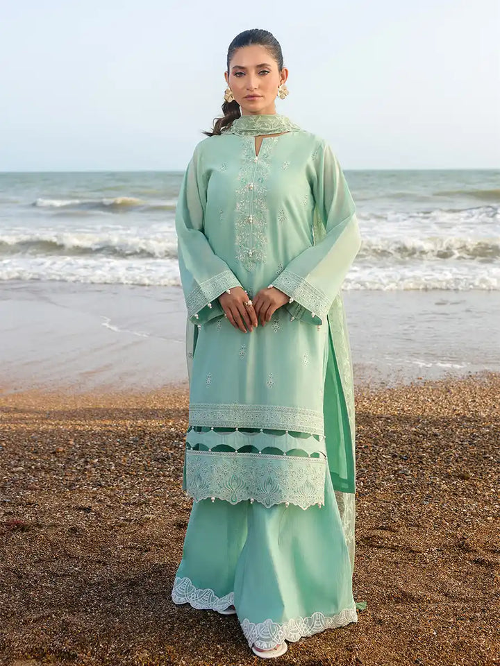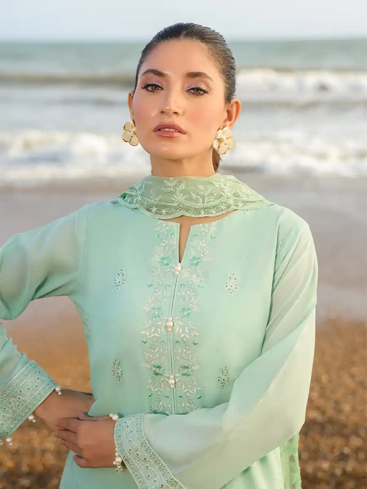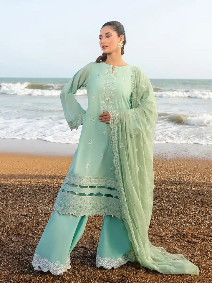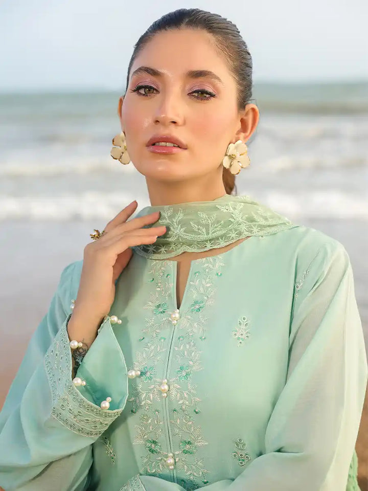 A stylish outfit featuring an embroidered lawn shirt, paired with an embroidered dupatta and a plain cambric trouser. Designed to offer comfort and elegance for any occasion, it's a versatile choice for Casual or festive Wear.
