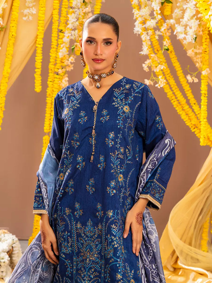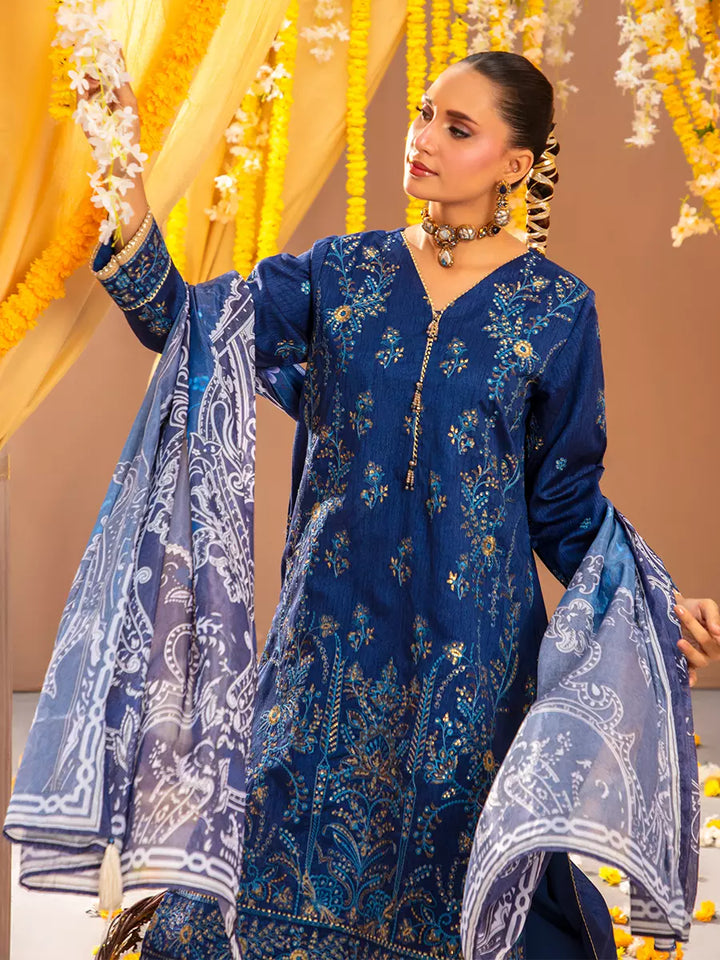 Celebrate tradition with our 3PC unstitched festive embroidered suit, crafted from premium fabric with elegant embroidery a versatile and stylish pick for any occasion.
