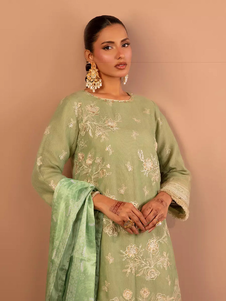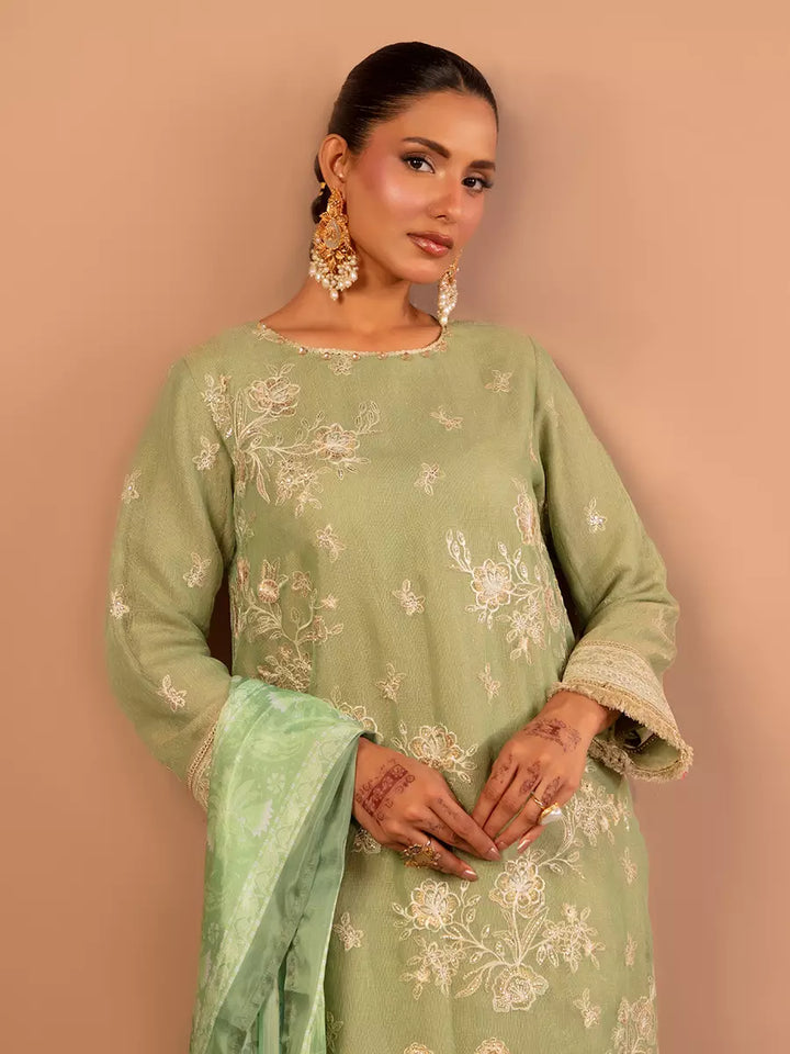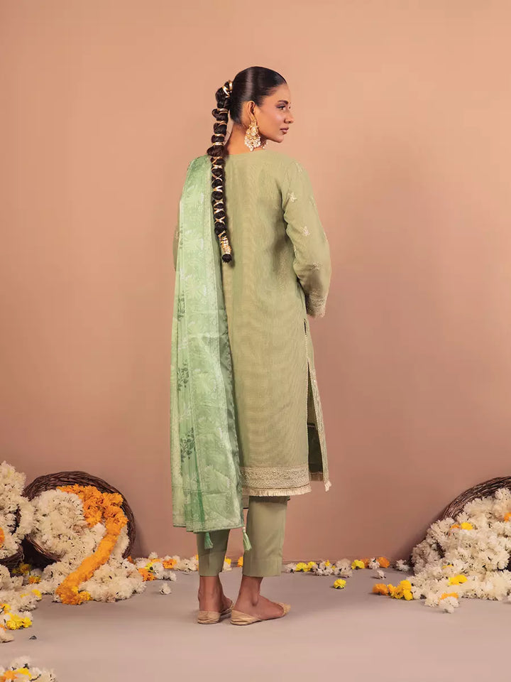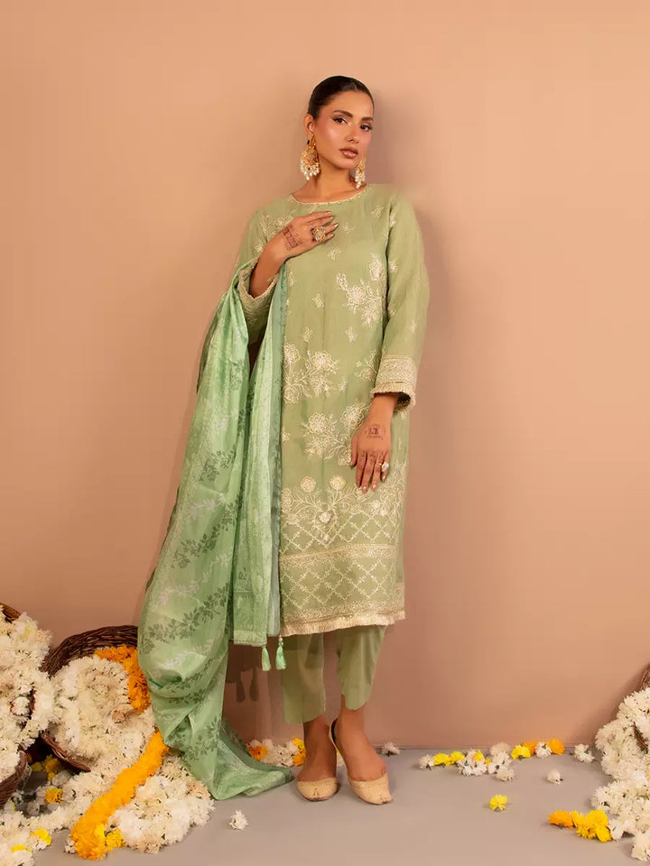 Celebrate tradition with our 3PC unstitched festive embroidered suit, crafted from premium fabric with elegant embroidery a versatile and stylish pick for any occasion.