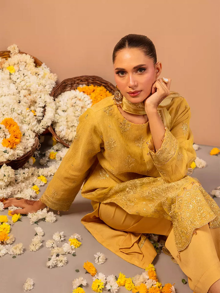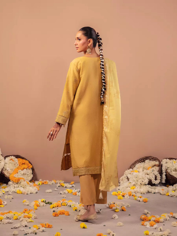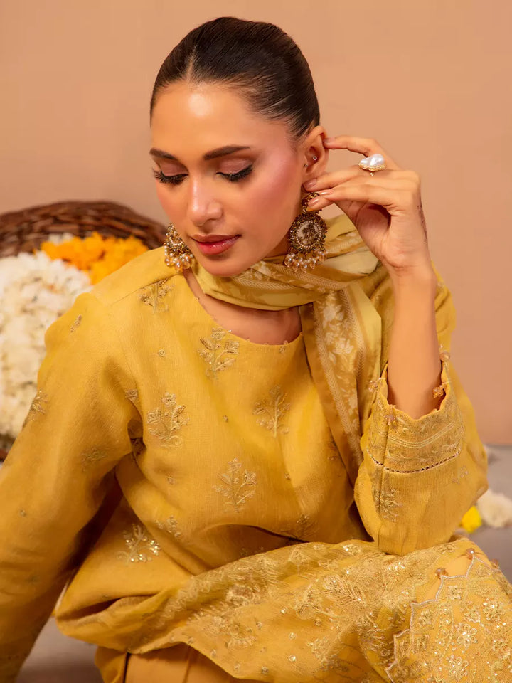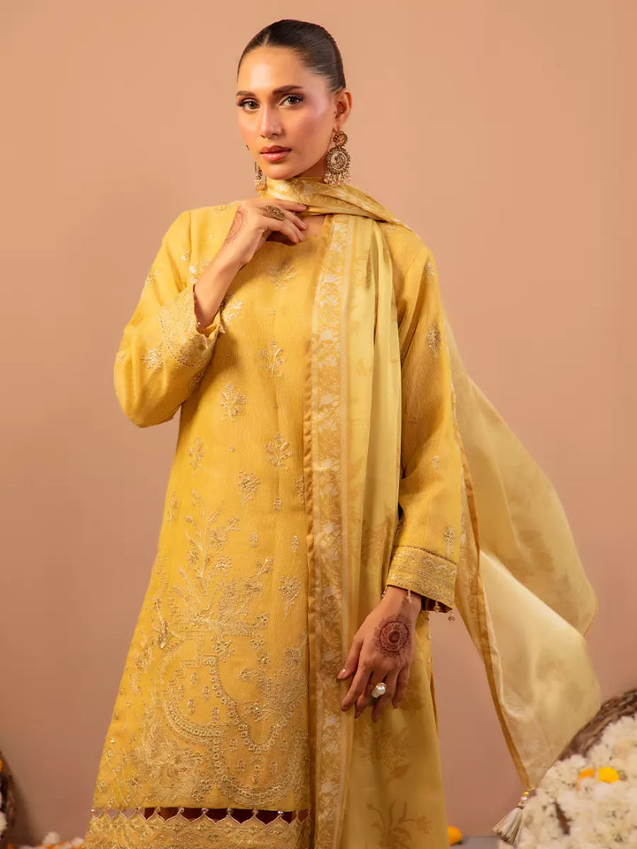 Celebrate tradition with our 3PC unstitched festive embroidered suit, crafted from premium fabric with elegant embroidery a versatile and stylish pick for any occasion.