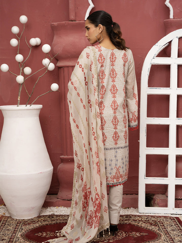 3pc Unstitched - Lawn Printed Embroidered Shirt With Chiffon Screen Printed Dupatta