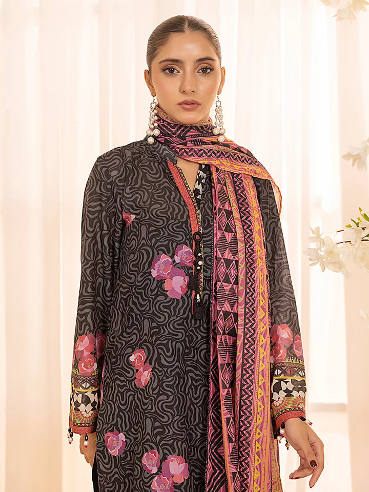 Style up your wardrobe with 3-Piece Unstitched Lawn Collection. Featuring a vibrant Lawn printed shirt, cambric dyed trouser, and a beautifully Lawn printed dupatta.