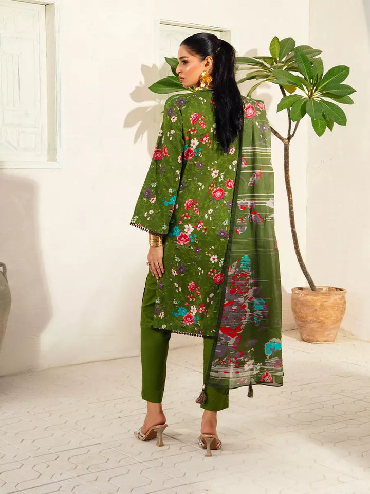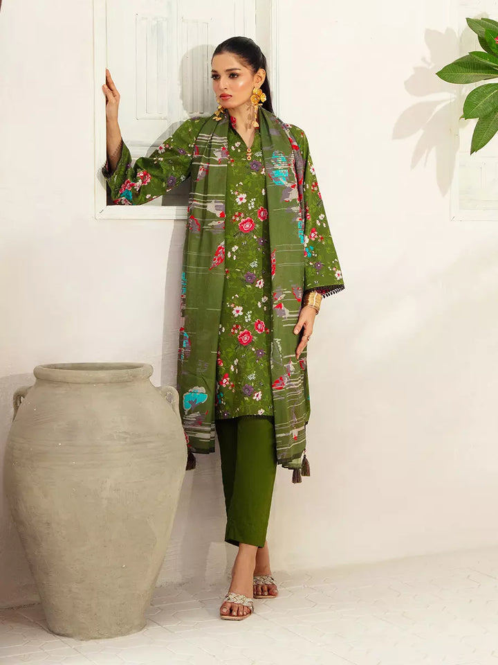Style up your wardrobe with 3-Piece Unstitched Lawn Collection. Featuring a vibrant Lawn printed shirt, cambric dyed trouser, and a beautifully Lawn printed dupatta.