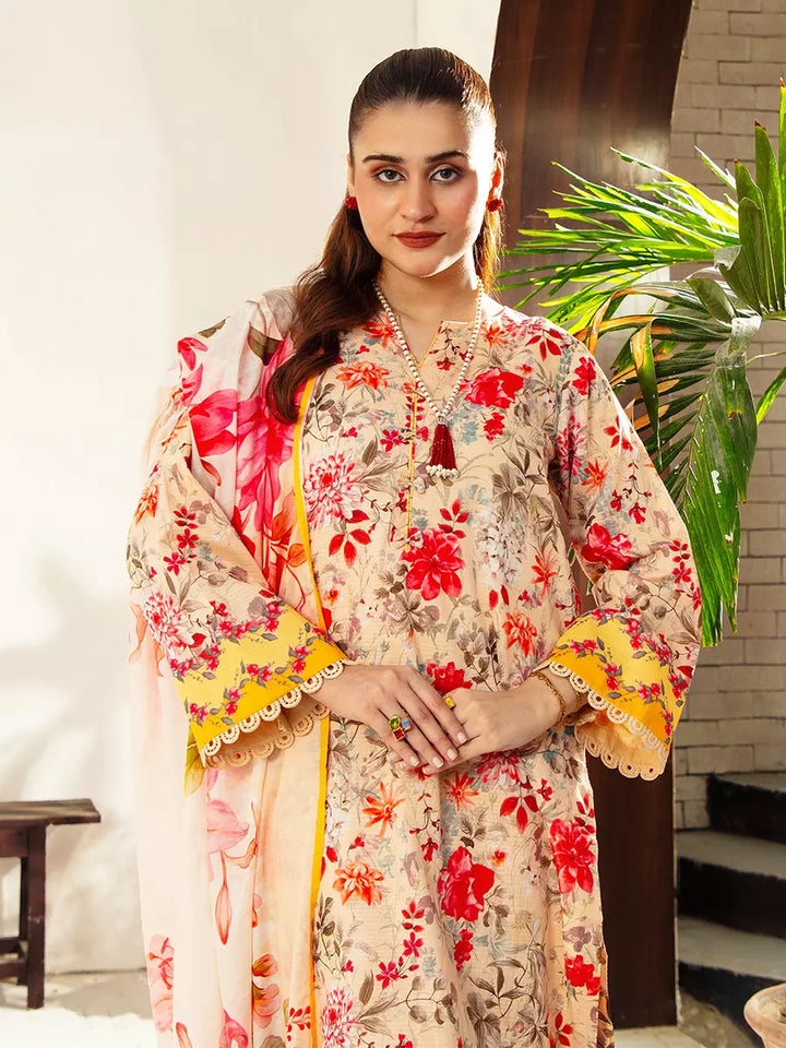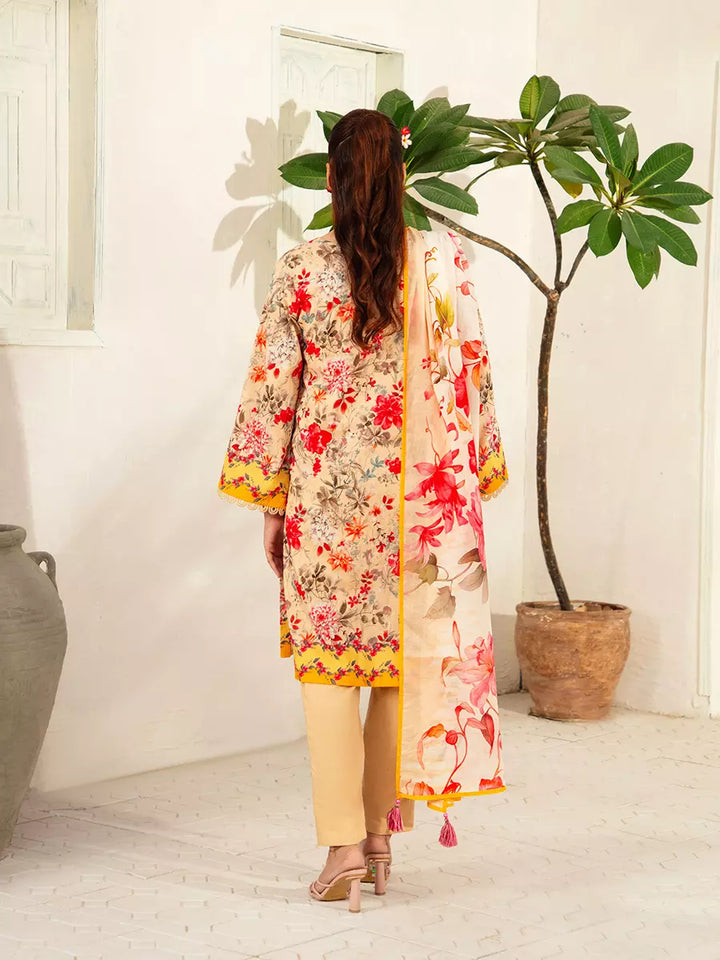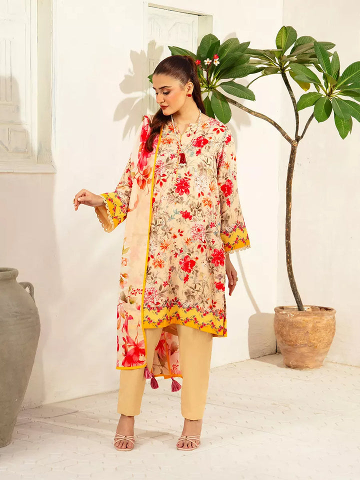 Style up your wardrobe with 3-Piece Unstitched Lawn Collection. Featuring a vibrant Lawn printed shirt, cambric dyed trouser, and a beautifully Lawn printed dupatta.