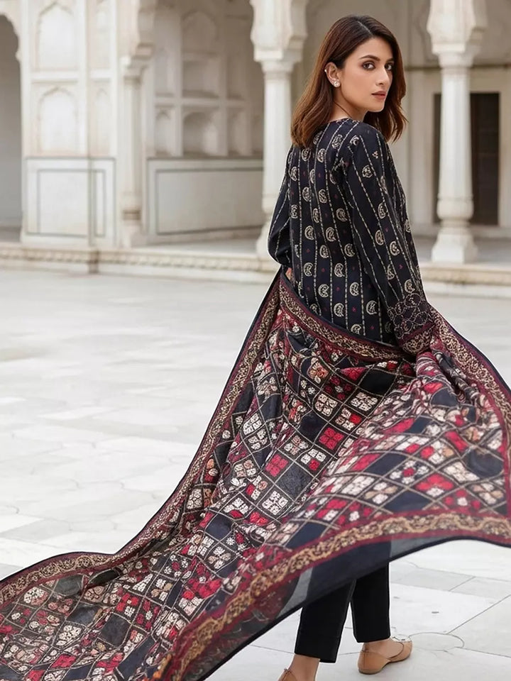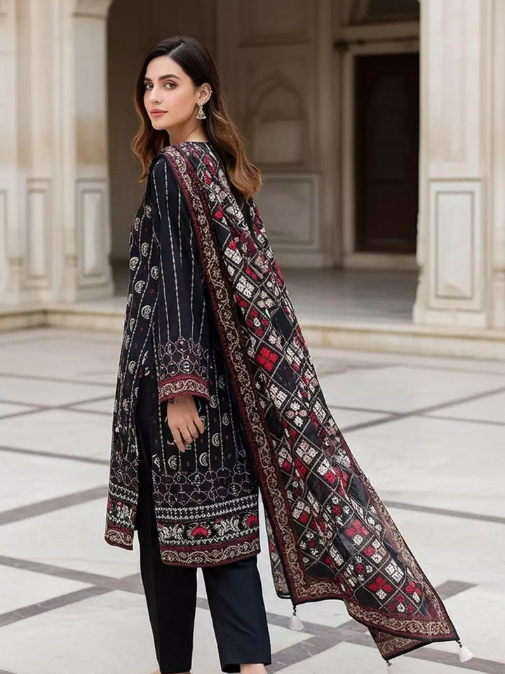Style up your wardrobe with 3-Piece Unstitched Cambric Collection. Featuring a vibrant Cambric printed shirt, cambric dyed trouser, and a beautifully Lawn printed dupatta.
