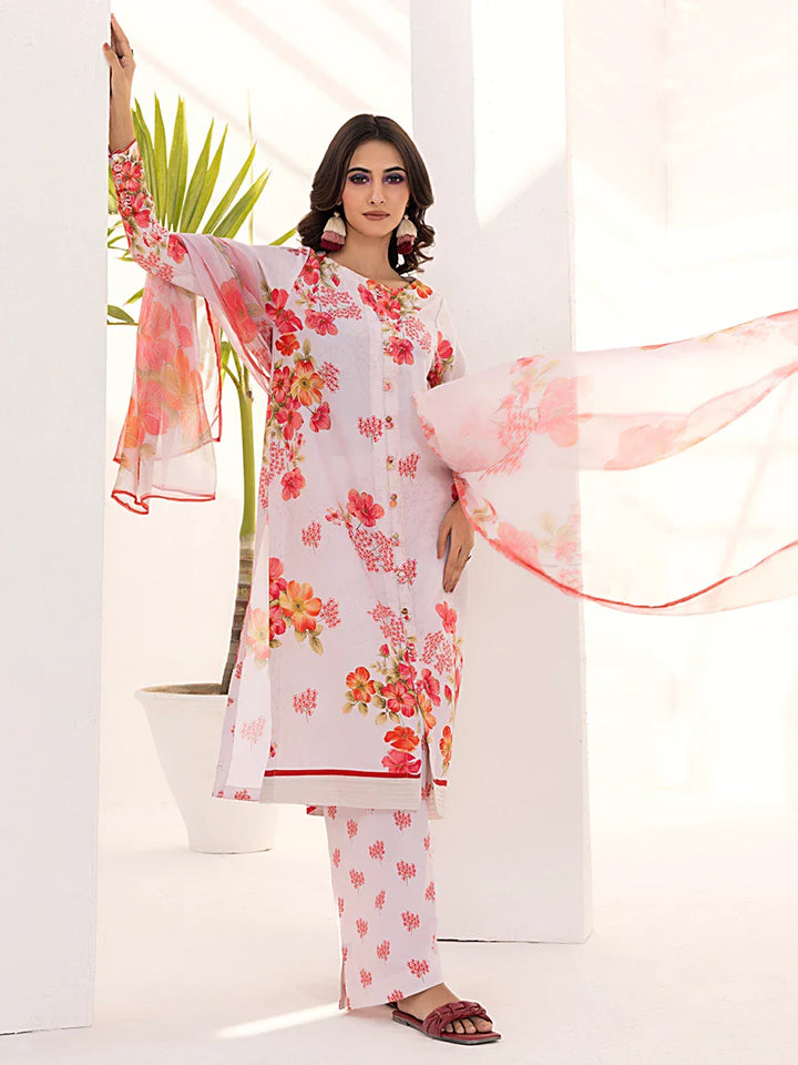 3PC Unstitched Printed Lawn Silk Suit (ASI108)