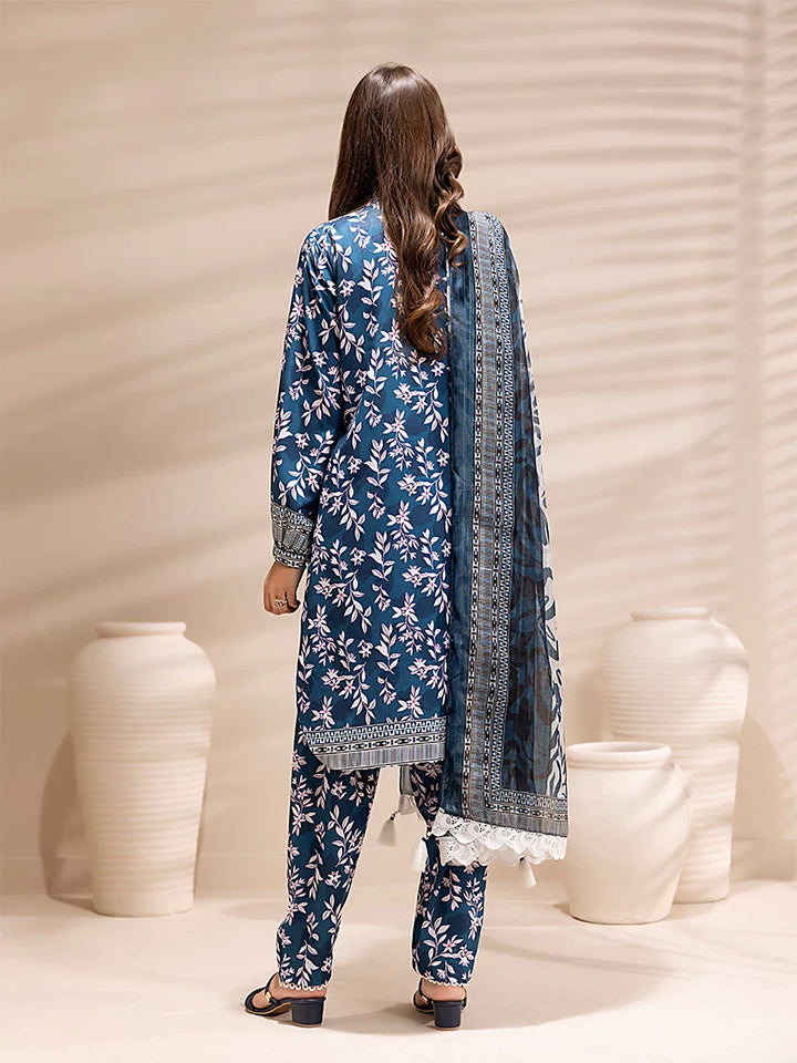 Elegant 3-piece suit in premium printed lawn silk. Includes a breathable shirt, trousers, and a lightweight dupatta. Perfect for any occasion.