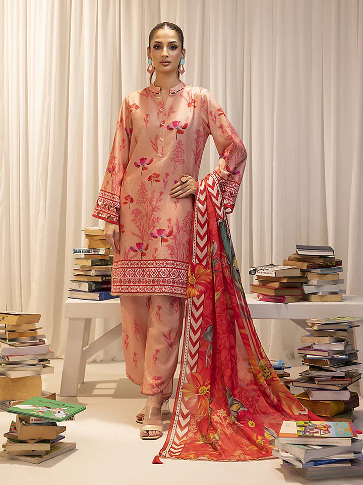 3pc Unstitched - Printed Lawn Silk Suit (ASI015)