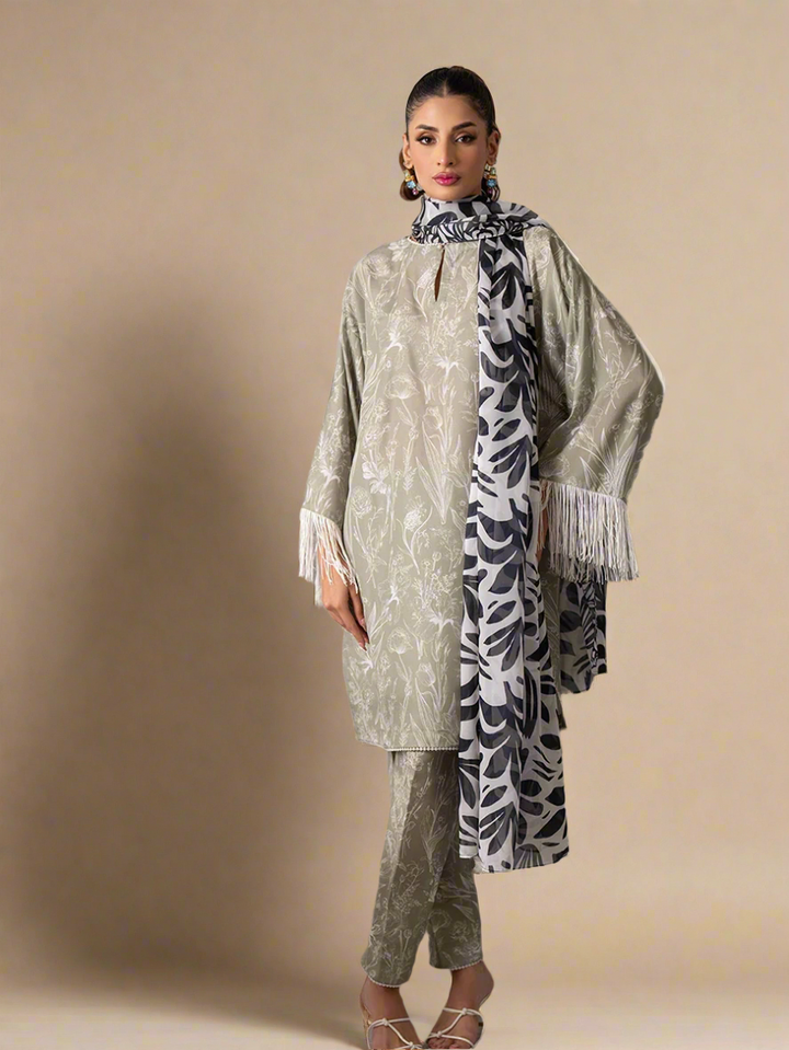 3pc Unstitched - Printed Lawn Silk Suit (ASI028)