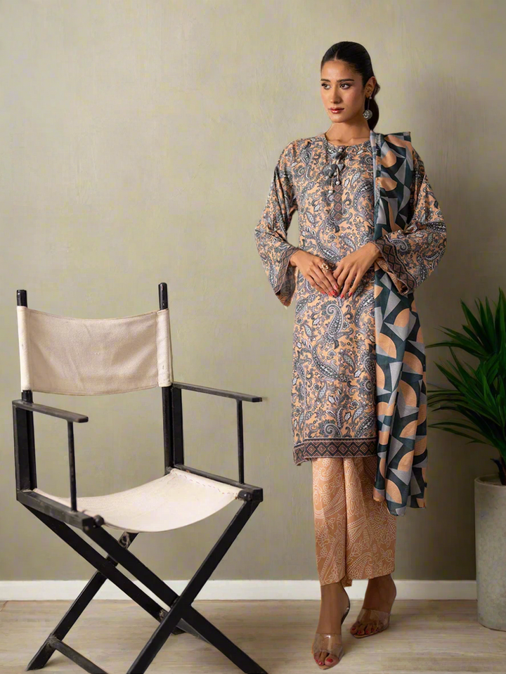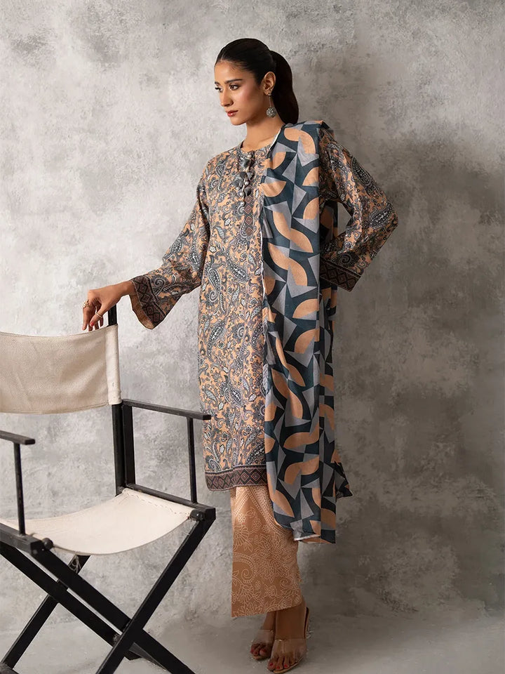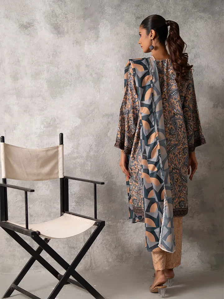 3pc Unstitched - Printed Lawn Silk Suit (ASI029)