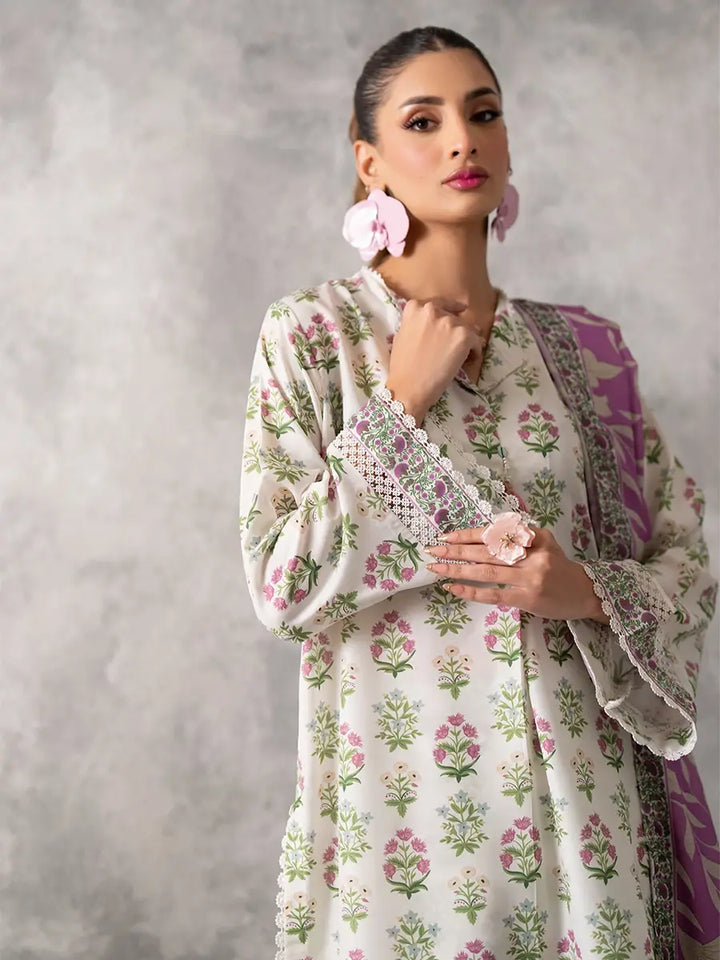 3pc Unstitched - Printed Lawn Silk Suit (ASI032)