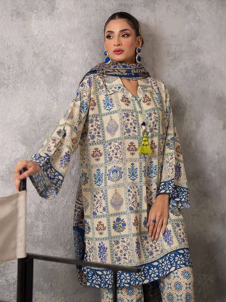 3PC Unstitched Printed Lawn Silk Suit (ASI034)