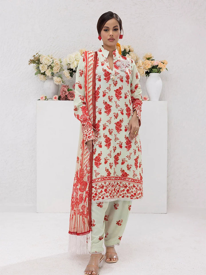 3PC Unstitched Printed Lawn Silk Suit (ASI084)