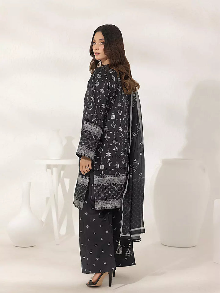 Elegant 3-piece suit in premium printed lawn silk. Includes a breathable shirt, trousers, and a lightweight dupatta. Perfect for daily wear.