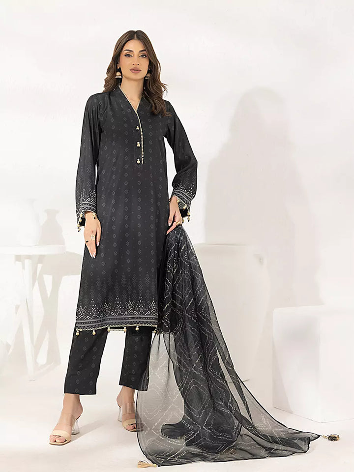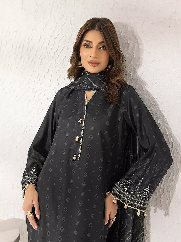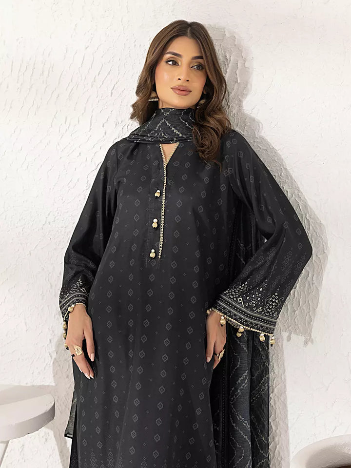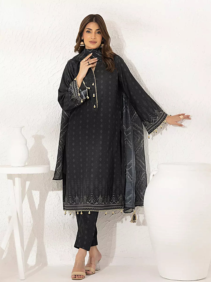 Elegant 3-piece suit in premium printed lawn silk. Includes a breathable shirt, trousers, and a lightweight dupatta. Perfect for daily wear.