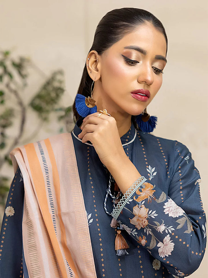 Brighten up your wardrobe with our 3-Piece Unstitched Lawn Collection. Featuring a vibrant printed shirt, cambric dyed trouser, and a beautifully printed dupatta.