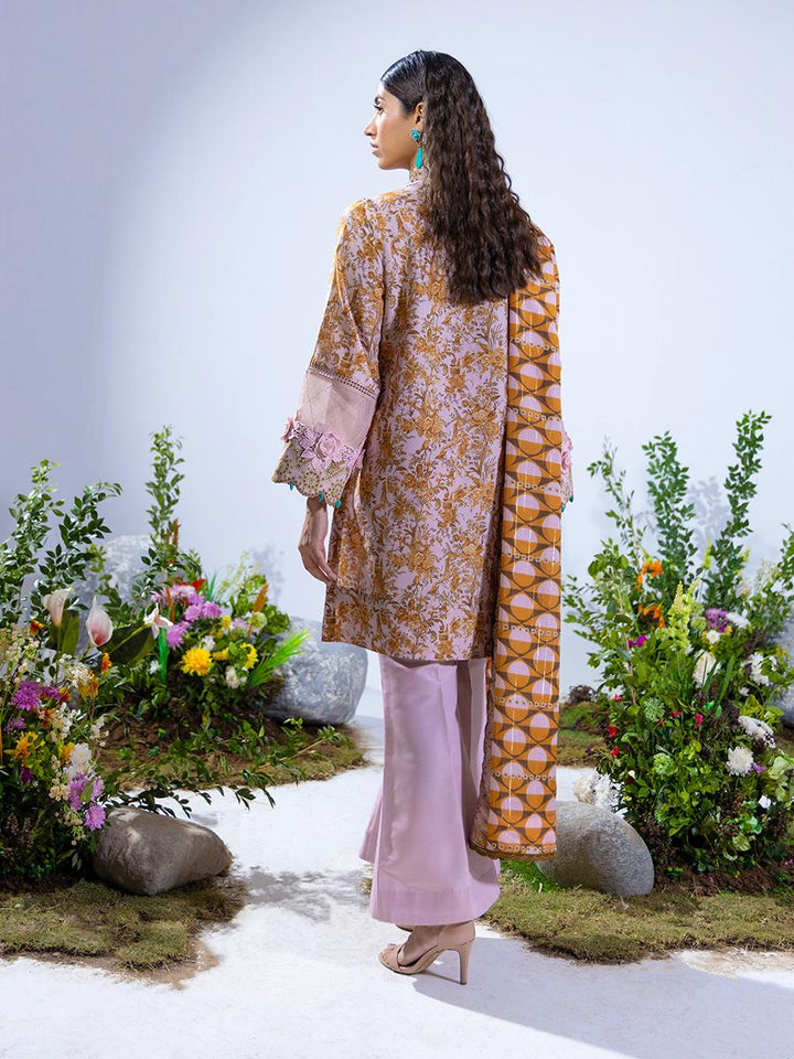 3pc Unstitched - Printed Lawn Silk (SI8)