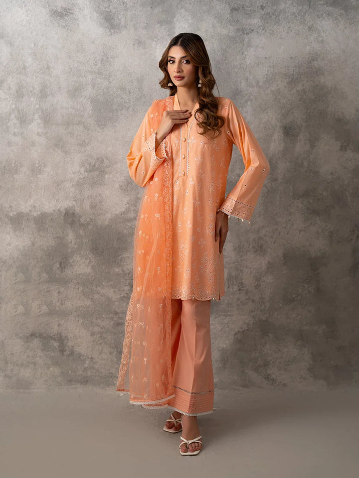 3PC UNSTITCHED CHIKANKARI EMBROIDERED LAWN SUIT