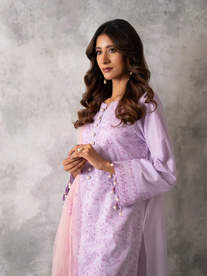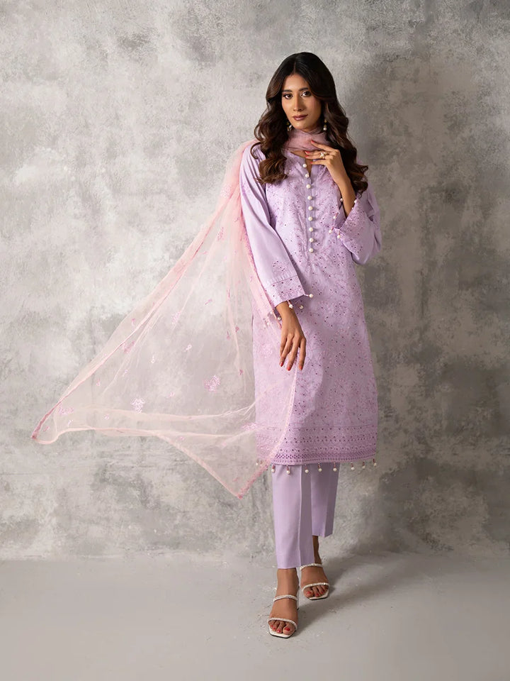 3PC UNSTITCHED CHIKANKARI EMBROIDERED LAWN SUIT