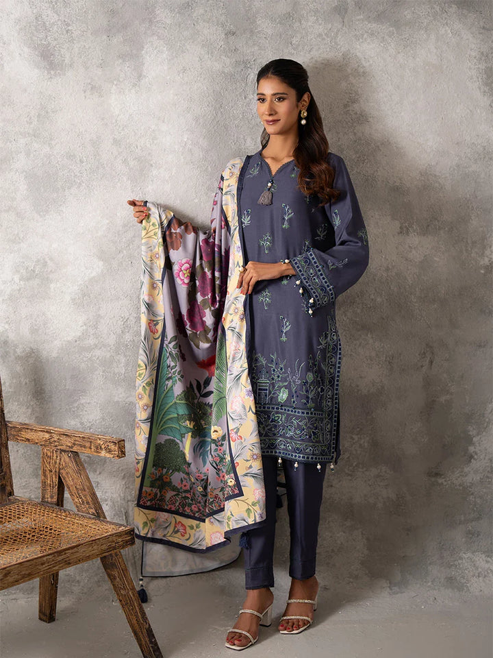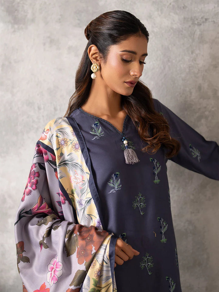 3PC UNSTITCHED EMBROIDERED LUXURY COTTEL SUIT