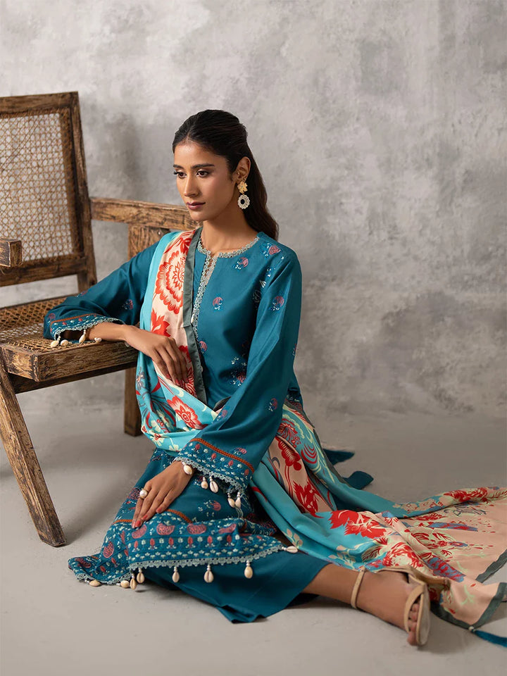 3PC UNSTITCHED EMBROIDERED LUXURY COTTEL SUIT
