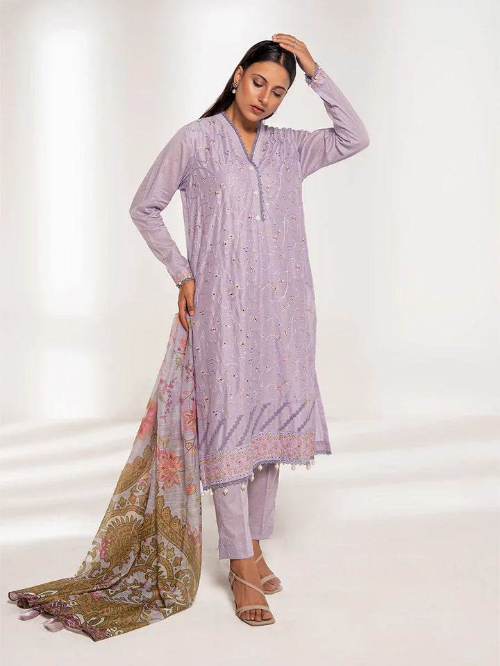 3PC EMBROIDERED LAWN SUIT (ALM036)